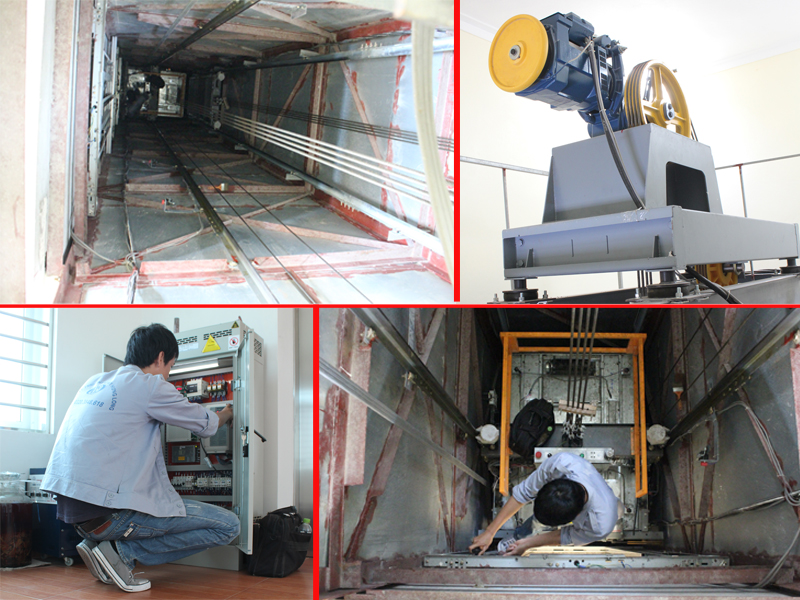 – Vận chuyển bộ tời, tủ điện lên tum đặt phòng máy