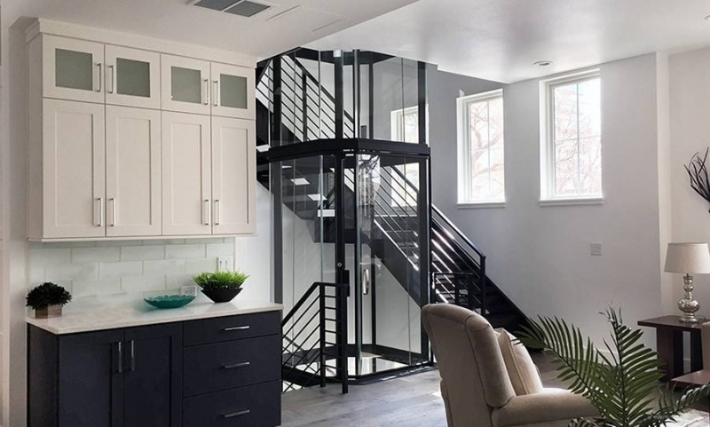 Nhưng cách này cũng tồn tại một số nhược điểm. Cầu thang thường không được trang trí mà xây dựng đơn giản. Khoảng không gian giữa lòng cầu thang bộ thường là giếng trời để lấy sáng. Khi lắp thang máy ở trong, đồng nghĩa với việc gia chủ sẽ phải hy sinh khoảng giếng trời này. Nhưng gia chủ đừng quá lo lắng, bởi giải pháp lúc này là lắp thang máy khung thép, vách kính cường lực.