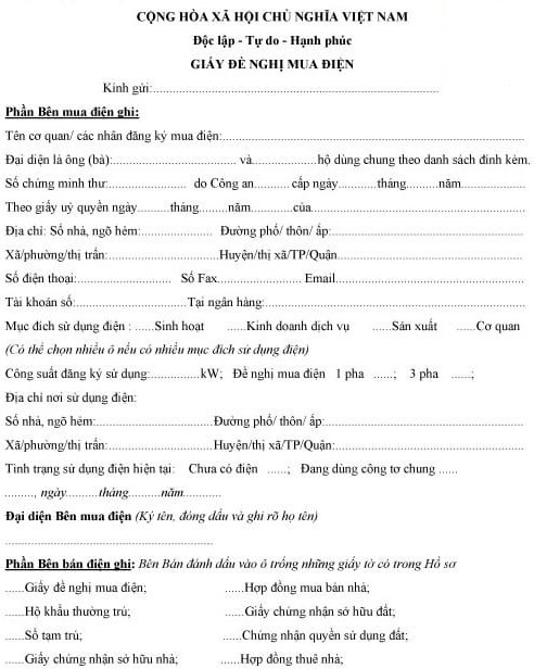 Hồ sơ đăng ký điện 3 pha gồm có các giấy tờ sau :